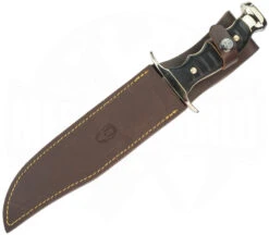 Das ist mal ein richtiges Messer! Mit seiner ĂŒberragenden LĂ€nge von 33,5 cm und einer scharfen Bowie Klinge, wĂ€re das Muela Alce Scout 7220 Bowie Messer sicher auch fĂŒr Crocodile Dundee interessant gewesen. Ganze 21,5 cm scharf geschliffener INOX-Stahl steht dir kĂŒnftig mit dem Alce Scout zur VerfĂŒgung. Als preiswertes Jagdmesser liegt hier der Augenmerk ganz klar auf der Brauchbarkeit des Werkzeugs, nicht jedoch ohne die klassischen Stilmittel eines traditionellen Jagdmessers zu vergessen. Gefertigt wird das Fixed Messer in Spanien. Eine braune Scheide aus Leder mit gelben ZiernĂ€hten wird mitgeliefert.Â