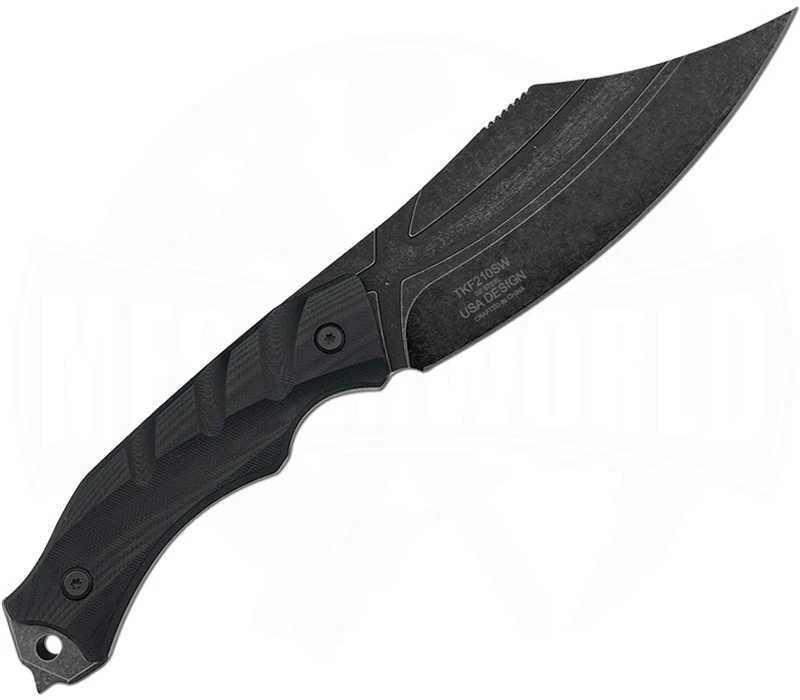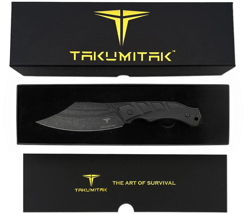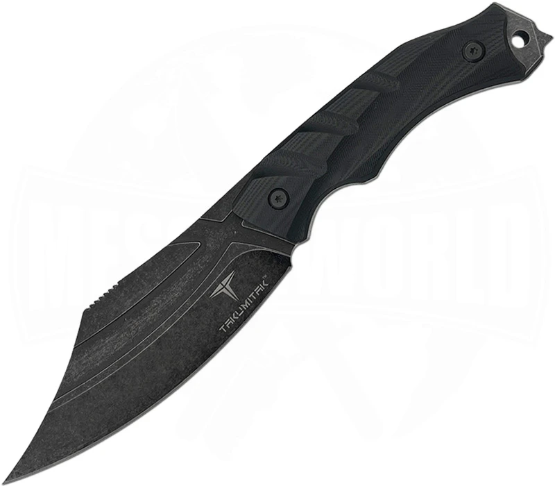 Man nehme ein klassisches Bowie Messer und ein modernes Tactical und kombinier beides: Und schon erhĂ€lt man das Alert Stonewashed von Takumitak. Eine enorm wuchtige, bauchige Klinge aus D2 und der durchgehende All-Black-Style machen das Alert zu einem echten Hingucker. Die 12,7 cm lange Bowieklinge eignet sich hervorragend fĂŒr diverse Schneidaufgaben, jedoch können auch Dosen und dergleichen unkompliziert aufgestochen und aufgehebelt werden. Das Messer ist schön robust verbaut und so kann man sich auch bei hĂ€rteren Arbeiten auf die QualitĂ€t eines Takumitak Messers verlassen. Besonders das an die Hand angepasste G10-GriffstĂŒck sowie die generelle Formgebung des Vollerl-Werkzeugs sorgen fĂŒr eine ausgeglichene Handhabung. Auch der praktische Glasbrecher ist ein dicker Pluspunkt. Verstauen lĂ€sst sich das Alert in einer Kydexscheide.
