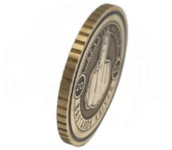 Die Bastards Coin wurde von Sten Schiller von Schiller Custom Parts Deutschland gefertigt. Sie ist 3 mm dick und hat einen Durchmesser von 40 mm. Schwarzes Harz in einem Band auf beiden Seiten und GITD (Glow in the Dark) Farbe verleihen ihr einen einzigartigen Look.