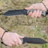 Der SOCP Dagger von Benchmade hat eine schwarz beschichtetet Klinge aus 440C Stahl sowie einen Ring am Griffende, mit dem er Ă€hnlich einem Karambit sehr einfach und schnell gezogen werden kann. Dabei ist es möglich, mit dem Dolch in der Hand zusĂ€tzlich eine SchuĂwaffe zu ziehen und auch damit zu schieĂen. Die leichte Kunststoffscheide mit Clip ist MOLLE-kompatibel.Â