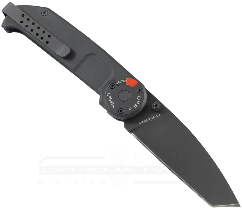 Das BF2 CT Taschenmesser von Extrema Ratio gehört zur Serie der Light Folder und wurde für den professionellen Einsatz hergestellt. Die 82 mm lange Tanto-Klinge ist flach geschliffen und durch Zirkonium-Carbonit dunkel brüniert (MIL-C-13924). Eine Daumenauflage bietet zusätzliche Einsatzmöglichkeiten. Der Griff aus anodisiertem Aluminium besitzt die typische Extrema Ratio Flachzone. Damit lässt sich die Tanto-Klinge auch mit Handschuhen leicht öffnen. Die Klingensicherung erfolgt über den bewährten Liner-Lock. Zusätzlich wird der Liner mit einem manuellen Sperrmechanismus gesichert. Innovativ ist auch der umsetzbare Clip, der so positioniert ist, dass beim Tragen in der Tasche nur der Clip zu sehen ist. Das Messer ist ebenfalls mit einer Drop-Point-Klinge lieferbar.