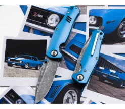 Bökers 1969 Z28-Damast lässt diese Legende wieder auferleben und repräsentiert das Muscle Car. Alles an diesem Messer ist dem Camaro Z28 nachempfunden. Der blaue Aluminiumgriff kommt, wie auch der Camaro, in der Farbe „Le Mans Blue“ und besitzt die klassische Linienführung der Karosserie, inklusive Heckspoiler und Stufenheck. Die Aussparungen am Griffende erinnern an die kiemenartigen Heckeinlässe des Autos. Der Taschenclip stellt die verchromten Spiegel und Türgriffe dar. Die für Muscle-Cars typischen Felgen spielen sich in der Klingenschraube wieder. Wie man sieht, wird hier auf jedes kleinste Detail geachtet. Aber das Wichtigste kommt erst noch. Die Drop-Point-Klinge! Sie besteht aus 80-lagigem Damast des oberen Querlenkers des Camaros. Wie toll ist das denn? In jedem Messer steckt also das DNA des Camaros! Das Damast-Muster wurde vom bekannten Chad Nichols handgeschmiedet und spielt auf die abfallende Cowl-Induction-Motorhaube an. In Zusammenarbeit mit dem italienischen Designer Tommaso Rumici enstand ein einzigartiges „Muscle-Knife“, das den Ruf des Z28 in Ehren trägt. Ein hochwertiges Schwebedisplay, eine Menge Leistung, eine sanfte Brise Fahrtwind und der Geruch der durchdrehenden Reifen sind im Lieferumfang enthalten. Legenden werden nicht geboren, sie werden von der Zeit geprägt. Bökers 1969 Z28-Damast ist ein Appell an den tollen Erfolg des Z28. Ein echtes Must-Have für jeden Auto-/Messer-Enthusiasten!