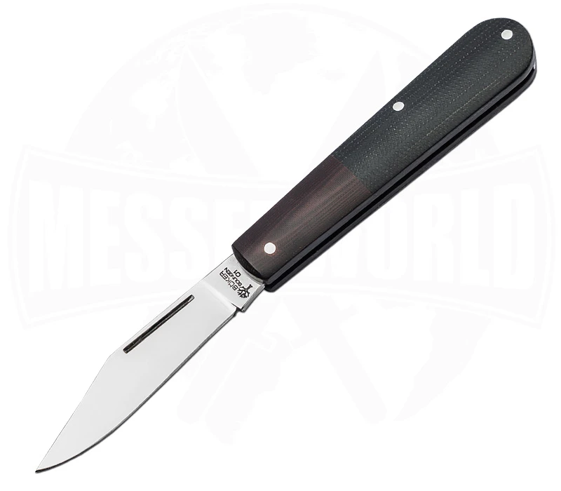 Ein zierliches Taschenmesser für den Alltag. Ganz klassisch in der Barlow-Form überzeugt das kompakte Taschenmesser mit Stil und einem moderneren Ansatz. Mit einem zweifarbigen Micarta-Griff und einer polierten Klinge zieht das Barlow Maroon die Blicke auf sich. Als EDC Messer lässt es sich dank fehlender Arretierung immer und überall problemlos mitführen. Das flache Design sorgt dafür, dass der kleine Folder in jeder Hosentasche Platz findet. Die 6,5 cm lange Klinge kann mittels Nagelhau aus ihrem Versteck geholt werden. Die Barlow-Klinge besteht aus O1-Kohlenstoffstahl und nimmt sich vor allem kleineren Aufgaben an. Gefertigt wird das Messer von Hand in der Solinger Messer-Manufaktur.