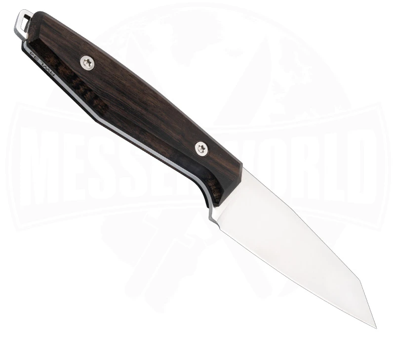 Alex Kremer ist ein aufsteigender Stern am Designer-Himmel was die Messerbranche angeht. Schon seit dem 18. Lebensjahr fertigt er Messer mit einer unvergleichlichen Leidenschaft und einer ordentlichen Portion Kreativität! Das beste Beispiel ist das Daily Knives AK1 Reverse Tanto Grenadill aus dem Hause Böker. Dieses ist zwar ein EDC Messer, doch anders als die meisten in dieser Klasse, verfügt es über eine feststehende Klinge und lässt sich nicht einklappen. Um diesen innovativen Schritt zu feiern, hat Böker auch ordentlich was springen lassen: Eine 7,8 cm lange Klinge aus sehr hochwertigem RWL 34 Stahl, der auf 60-62 HRC kryogengehärtet wurde, sowie optisch ansprechende Griffschalen aus Grenadill Holz sind Inventar des Messers. Zum Transport des Messers ist ebenfalls gesorgt, eine Lederscheide verstaut es angemessen.