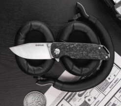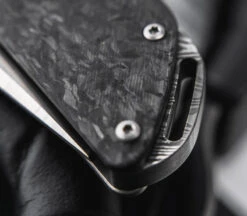 Mit dem Böker M4 Sherman Damast hatte Böker großen Erfolg. Nun entschieden sie sich dazu, ein EDC-Messer zu konstruieren, mit dem M4 Sherman als Basis. Der hierfür verwendete Stahl ist Magnacut, der nicht umsonst „Wunderstahl“ genannt wird. Speziell für den Messerbau entwickelt, bietet dieser Stahl eine gute Schnitthaltigkeit, Zähigkeit und Rostträgheit. Eine wichtige Rolle spielt der Stickstoff bei der Produktion des Stahles. Normalerweise schädigt Stickstoff den Stahl, allerdings wurde der Stickstoff beim MagnaCut einer ausgeklügelten Wärmebehandlung ausgesetzt, wodurch er in die kristalline Gitterstruktur eingebunden wurde. Der Unterschied des Sherman EDC zum M4 Sherman Damast liegt im eleganten Flipper. Mit ihm lässt sich die Klinge spielend leicht öffnen. Alternativ kann es auch mit dem Daumenpin geöffnet werden. Arretiert wird die Klinge mit einem massiven Titan-Framelock im Stonewash-Finish. Der leichte Griff aus wilder Kohlefaser vervollständigt das Gesamtbild des Folders. Ein Hingucker ist der überstehende Backspacer aus Damast, der mit einem Lanyard-Hole ausgestattet ist. So besitzt das Sherman EDC auch sein Stück des M4-Damast-Modelles.