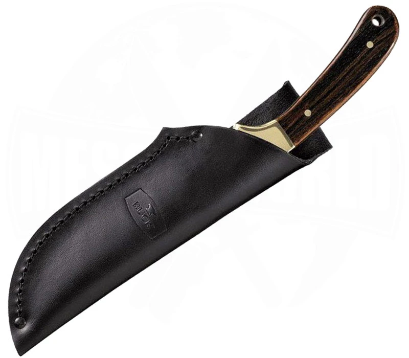 Das BUCK Ranger Skinner ist ein einfaches und ehrliches Messer, hergestellt im Land der unbegrenzten Möglichkeiten. UrsprĂŒnglich als limitierte Auflage geplant, gefiel das Skinner Ranger 113 BRS dann doch so gut, dass es ins regulĂ€re Sortiment aufgenommen wurde. Und das zurecht! Es kombiniert die VorzĂŒge zweier BUCK-Klassiker. Sowohl das Vanguard als auch das Folding Ranger lassen sich in diesem Modell erkennen. Typisch fĂŒr BUCK wird die Klinge aus effizientem 420HC-Stahl gefertigt. Deutlich besser als der gewöhnliche 420er, ĂŒberzeugt dieser mit einer soliden Schnitthaltigkeit, HĂ€rte und StabilitĂ€t. Die scharfe Klinge ist 7,9 cm lang und war ursprĂŒnglich zum HĂ€uten gedacht. Da das Jagdmesser allerdings so kompakte MaĂe hat und ein ĂŒberaus schönes Handling aufweist, lĂ€sst sich das Ranger Skinner auch als praktisches EDC-Messer mit feststehender Klinge oder als kleines Outdoormesser mitfĂŒhren. Der schicke Griff aus Dymondwood macht einen hochwertigen Eindruck, welcher von den schönen goldfarbenen Backen-Elementen unterstrichen wird. Das Full-Tang Messer wird mit einer schwarzen Lederscheide geliefert, die sich am GĂŒrtel tragen lĂ€sst.