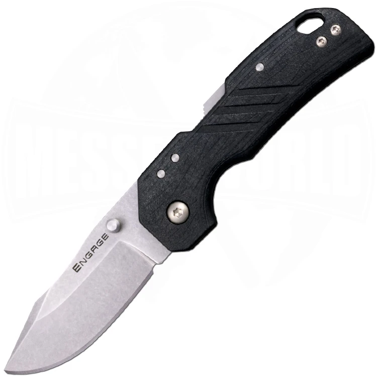 Mit dem Engage Clippoint kommt die preiswertere Variante des Cold Steel Favoriten auf den Markt. Anstelle des S35VN-Stahl kommt hier der 4116 Edelstahl für den Klingenkorpus zum Einsatz. Der leicht umgewandelte Griff besteht ebenfalls aus GFN Kunststoff und auch der Atlas-Lock ist geblieben. Das Einhandmesser wird über den Daumenpin geöffnet und lässt sich dank der großzügigen Fingermulde präzise und bequem führen. Die außergewöhnlich geformte Klinge ist 6,4 cm lang und ca. 2,5 mm dick. So trotzt das Engage vor allem den Aufgaben des Alltags und leichteren Einsätzen. Der Tip-Up-Taschenclip sorgt dafür, dass das Messer fest am Saum der Hosentasche befestigt werden kann.