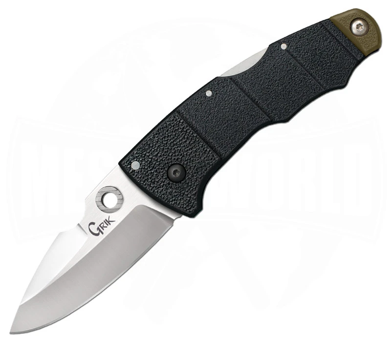 Das Grik ist ein außergewöhnliches Taschenmesser, welches einmal wieder beweist wie vielfältig die Geschmäcker und Designideen in der Messerbranche sein können. Andrew Denmko, der schon zahlreiche Messer für namhafte Firmen entwarf, steckt auch einmal wieder hinter diesem Modell. Mit einer asymmetrischen Farbaufteilung zwischen Olivgrün und Schwarz, zeiht das Grik die Blicke auf sich. Der Cold Steel typische Tri-Ad-Lock ist auch hier wieder verbaut und sorgt für maximale Sicherheit beim Arbeiten. Für die 7,2 cm lange Klinge wurde der japanische AUS-8A Stahl gewählt, sodass das Messer länger scharf bleibt. Der Griff besteht aus G10 Kunststoff.