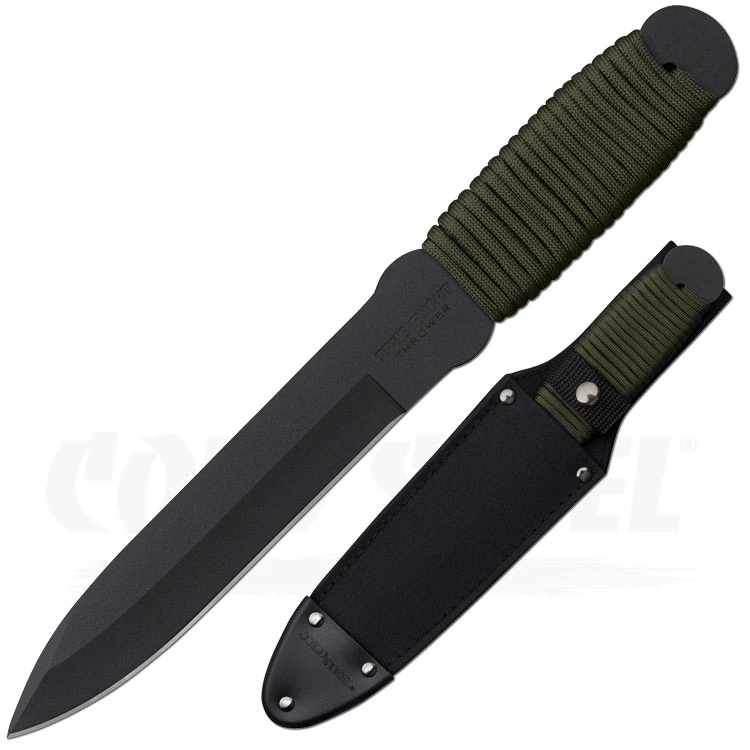 Das Cold Steel True Flight Thrower gilt als absoluter Favorit der Cold Steel Wurfmesser-Kollektion und begeistert sowohl Anfänger als auch Profis mit Balance, Optik und Stabilität. Die 5 mm starke und 17 cm lange Klinge besteht genau wie der Rest des Messers aus 1055 Kohlenstoffstahl. Der schwarz beschichtete Griff ist mit grünem Paracord umschlungen, wodurch das Messer auch beim Einsatz als Survival-oder Bushcraftmesser perfekt in der Hand liegt. Mitgeliefert wird eine Nylon-Scheide, in der das Messer optimal verstaut werden kann.