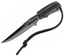 Das für den täglichen Gebrauch entwickelte Compact One BK der Messermacher-Legende Dietmar Pohl ist ein massives Messer aus robusten und schnitthaltigem D2 Werkzeugstahl. Es besitzt eine 6 mm starke und 8,8 cm lange Bowie-Klinge, die mit einer hochwertigen TiN Beschichtung versehen ist. Dadurch ist sie sehr unempfindlich gegenüber Kratzern und erzeugt nahezu keine Reflektionen der Sonne oder anderen Lichtquellen, was gerade für Soldaten ein großer Vorteil ist. Die CNC-gefrästen Griffschalen bestehen aus widerstandsfähigem G10 und liegen wegen des ergonomischen Designs ausgezeichnet in der Hand. Der abgerundete Voll-Erl sorgt zusätzlich für eine extreme Stabilität und Bruchsicherheit. Die Fräsungen der Daumenauflage verhindern ein Abrutschen des Daumens und geben einem so auch bei feinen Aufgaben die volle Kontrolle. Im Lieferumfang enthalten ist eine passgenaue Kydexscheide, die das Messer sicher transportiert und mit Hilfe des Tac-Clip auf verschiedene Weise an der Ausrüstung anbringen kann.