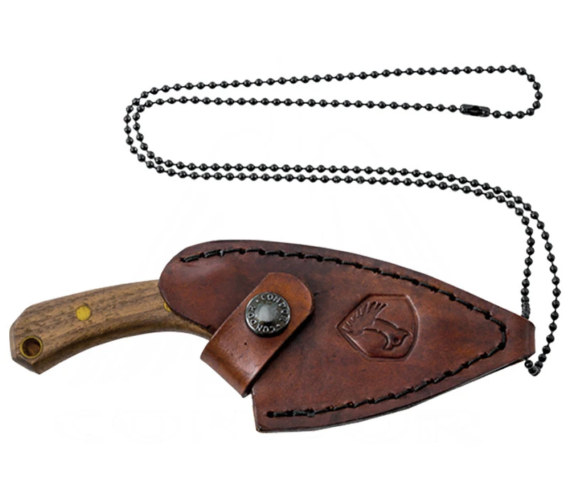 Das Pangui ist ein kleines, sehr stabiles feststehendes Skinner Messer mit einer breiten, 8,3 cm langen Klinge aus nicht rostfreiem 1095 High Carbon Steel. Der Griffschalen aus Walnussholz sind fest vernietet. Eine Fangschnur kann nach Wunsch angebracht werden. Zum Lieferumfang gehört eine robuste Lederscheide mit Kugelkette. Es kann auch als Neck-Knife getragen werden.