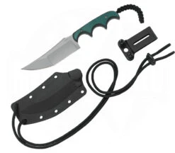 Die Minimalist-Reihe von CRKT ist schon seit Jahren eine feste GröĂe in der Messerszene und begeistert Messerfreunde mit ihrem ungewöhnlichen Aussehen. Das Minimalist Katana ist dabei keine Ausnahme. Die 9 cm lange Klinge besteht aus dem beliebten 8Cr13MoV Edelstahl, der nicht nur die Schneide sehr scharf werden lĂ€sst, sondern auch extrem korrosionsbestĂ€ndig ist. Der Designer Alan Folts lieĂ sich beim Entwurf dieses Messers von den japanischen Katanas inspirieren, fĂŒgte aber auch seinen eigenen Stil mit hinzu. Der schlanke Griff besitzt Schalen aus grĂŒnem G10, die fĂŒr StabilitĂ€t sorgen. Die ausgeprĂ€gten Fingermulden legen sich ausgezeichnet in die Hand und garantieren einen festen sowie sicheren Griff. Mit der beiliegenden Tragekordel lĂ€sst sich die passgenaue Kunststoffscheide als Neck-Knife um den Hals tragen, damit das Minimalist Katana immer im richtigen Moment griffbereit ist.Â