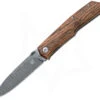 Die Klinge dieses edlen Taschenmessers wurde von dem bekannten Messerschmied Markus Balbach für Hartkopf geschmiedet. Heraus kamen erstklassige 300 Lagen nicht rostfreier Damaststahl. Die Rückenverriegelung übernimmt die Klingenarretierung des exquisiten Zweihandmessers aus Solingen in geöffnetem Zustand. Die hochwertig verarbeiteten Griffschalen bestehen aus Ebenholz und sind sauber auf Messingplatinen aufgenietet. Die schönen Neusilberbeschläge sind poliert, und auch ein kleines Messing-Gravurplättchen gehört zur Ausstattung.