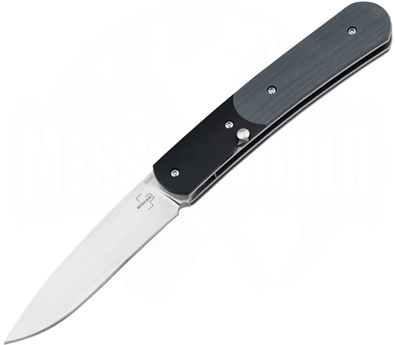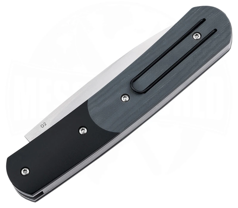 Das ist doch mal ein außergewöhnliches Messer! Als eine ganz andere Art von Springmesser, kommt das Dogleg Auto von Böker Plus mit einem speziellen Druckknopf/Schieber System, welches die Klinge aus dem Heft springen lässt. Die 8,4 cm lange Klinge besteht aus robustem D2-Werkzeugstahl, welcher so einiger Belastung standhält. Die Kombination aus schwarzem Edelstahl und grauem G10-Kunststoff lässt einen formschönen Griff entstehen. Als Tragemöglichkeit entschied sich der Designer Stan Mojzis einen Drahtclip ins Heft zu verbauen. Die Verarbeitung des Messers ist nach Böker-Plus-Standard wieder einmal sehr gut. Ein Nylon-Etui mit mehreren Taschen und Reißverschluss liegt zum Messer ebenfalls anbei.