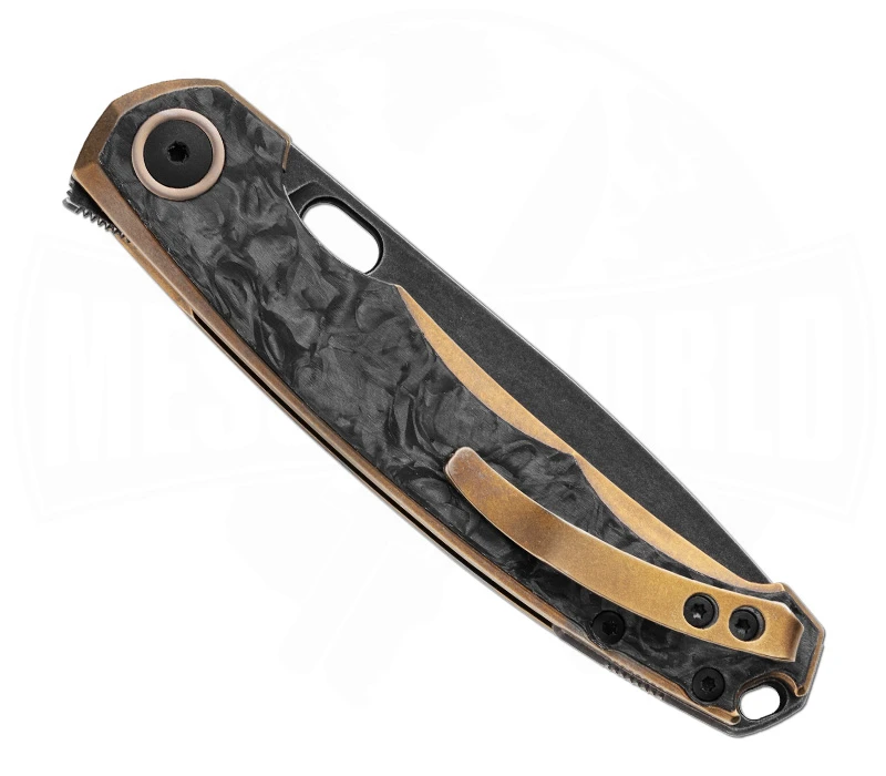 Wenn exquisite Design-Ideen auf hochwertigste Messerkunst und Verarbeitungstechnik stoĂen, dann haben die Maniago Knife Makers meist ihre Finger im Spiel. So auch beim Eclipse Titanium CF Bronze. Die Schönheit und der edle Charakter dieses Taschenmesser lĂ€sst sich kaum in Worte fassen, auch der Begriff Gentleman-Folder spottet diesem Meisterwerk moderner Messerkunst gĂ€nzlich. Kurzum lĂ€sst sich sagen, dieses Klappmesser ist einfach der Wahnsinn! Die GriffstĂŒcke aus bronzefarbend anodisiertem Titan im Zusammenspiel mit den Einlagen aus wilder Kohlefaser lassen die Mundlade vor Begeiterung kompromisslos auf den Tisch knallen. Auch das Logo von MKM lĂ€sst sich leicht akzenturiert am Ende der Griffschale finden.