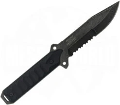 Die dunkle Stonewashed Klinge und der groĂzĂŒgige Double-Guard verleihen dem Escort einen eindrucksvollen und taktischen Charakter. Das feststehende Messer kommt mit einer 13,9 cm langen D2 Stahl Clippoint-Klinge und einem wirklich ergonomisch geformten GriffstĂŒck. Im Vollerl verbaut, ist das Escort definitiv robust und widerstandsfĂ€hig, sodass es auch bei hĂ€rteren Aufgaben benutzt werden kann. Dank des Teilwellenschliffs kann mit dem Escort nicht nur geschnitten, sondern auch gesĂ€gt werden, wodurch sich viele verschiedene Materialien deutlich leichter verarbeiten lassen. Der Double Guard schĂŒtzt vor versehentlichen Verletzungen und trĂ€gt gleichzeitig zur Ergonomie bei. Ein echter Handschmeichler wird das Messer jedoch erst durch die eingewellten G10-Handles. Eine Kydexscheide zum Tragen ist ebenfalls Teil des Inventars.Â