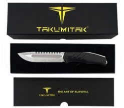 Das Takumitak Exit Point ist ein vielseitiges Messer, das fĂŒr den harten Einsatz entwickelt wurde. Es verfĂŒgt ĂŒber eine robuste, CNC-gefrĂ€ste Full-Tang-Klinge aus D2-Stahl mit einer KlingenlĂ€nge von 13,9 cm und einer StĂ€rke von 4,8 mm. Die Klinge ist mit einem Flachschliff fĂŒr eine hohe Schneidleistung ausgestattet und durchgehend gehĂ€rtet auf HRC 60-62 fĂŒr eine lange Lebensdauer und extreme Haltbarkeit.Â