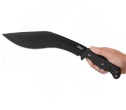 FKMD ist ein bekannter Hersteller aus Italien und fĂŒr seine Kukri-Haumesser und Macheten bekannt. Mit dieser Extreme Tactical Kukri Machete bietet der Hersteller ein weiteres stabiles Werkzeug. Das Messer ist fĂŒr hĂ€rteste EinsĂ€tze entwickelt worden. Mit der 24 cm langen Klinge mit einer StĂ€rke von 6 mm kann man genug Wucht aufbringen, um problemlos Hack- und Schneidarbeiten durchzufĂŒhren. Die Klinge wurde mit einer speziellen Beschichtung versehen. Die bronzefarbene HNCF-Beschichtung (Hard Nano Ceramic Finish) der Klinge weist eine Vickers-HĂ€rte von 3000-3500 auf und liegt damit im Bereich zwischen Korund und Diamant. Der Griff ist aus grĂŒnem Forprene hergestellt. Am Griffende kann auch eine Fangschnur befestigt werden. Zum Transport dient eine Cordurascheide mit GĂŒrtelschlaufe.