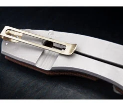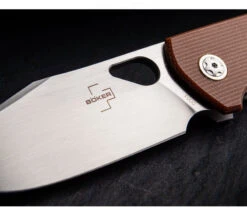 Das rustikale F3.5 Micarta von Böker Plus ist die Weiterentwicklung des beliebten F3 Modells. Der bekannte Designer Jesper Voxnaes entwarf hierbei ein robustes Messer, welches nach dem Ăffnen ĂŒber die Daumenöffnung mit einem stabilen Edelstahl-Framelock verriegelt. Der gern genutzte D2 Werkzeugstahl als Klingenmaterial garantiert in Verbindung mit dem Flachschliff eine stabile und schnitthaltige Klinge. Durch die Kombination aus braunem Canvas Micarta auf der einen, und Edelstahl auf der anderen Seite, erhĂ€lt das Messer einen klassischen und gleichzeitig edlen Look, welcher durch die Satinierung der Klinge noch abgerundet wird. Die farblichen Akzente des F3.5 Micarta wie der bronzefarben anodisierte Clip und der Spacer in derselben Farbe ergeben ein schönes Gesamtbild. Auch die Klingenachsschraube ist mit einem bronzefarbenen Ring unterlegt. Ein hochwertiges Nylon-Etui wird mitgeliefert.