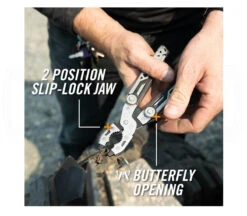 Bei harten Aufgaben muss man definitiv einen groĂen Werkzeugkasten dabeihaben, oder? Nicht wenn man das Dual Force von Gerber in der Hosentasche hat! Durch die Konstruktionsweise wird eine Verdopplung der KraftĂŒbertragung der Zange, die in zwei Positionen verstellbar ist, erreicht. Neben der starken Zange mit den extra starken ZĂ€hnen bietet das Dual Force darĂŒber hinaus gleich 11 weitere nĂŒtzliche Tools. Eine 8,3 cm lange Klinge aus schwarz beschichtetem Stahl, eine SĂ€ge sowie eine Feile sind mit von der Partie. Besonders nĂŒtzlich ist der Schraubenzieherarm, der sich mit den insgesamt drei mitgelieferten Bits hervorragend bedienen lĂ€sst. Die verschiedenen Werkzeuge lassen sich ĂŒber einen Lock arretieren und klappen beim Arbeiten nicht ein. Einen besonderen Vorteil bringt das Dual Grip mit seiner Bauweise, die im Vergleich zu manch anderen Tools im geöffneten Zustand deutlich weniger Handspanne einnimmt und somit mehr Kraft zulĂ€sst. Ein Nylon-Etui mit dem Gerber Schriftzug ist ebenfalls Teil der Lieferung.