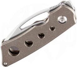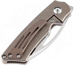 Die Griffschalen sind aus Titanium gefertigt und bieten eine komfortables und sicheres Handling. Die Klinge wird ĂŒber einen Frame Lock gesichert, der zuverlĂ€ssig und sicher verriegelt. Mit einem Gewicht von 68 g und einer GesamtlĂ€nge von 14,3 cm ist das Kansept Goblin Bronze Titanium das perfekte Messer fĂŒr den tĂ€glichen Gebrauch.