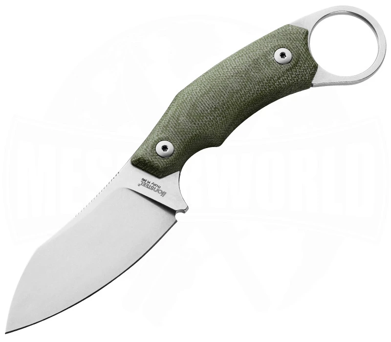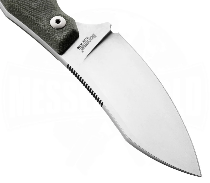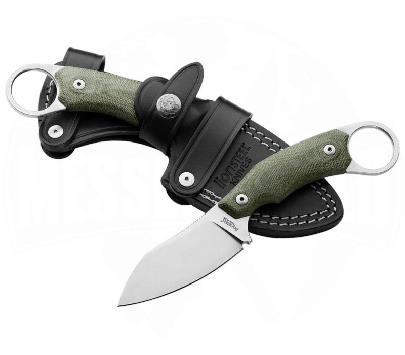 LionSteel ist ein Messerhersteller aus Italien, der sich ĂŒber Jahren einen groĂen Namen aufgebaut hat. Bei LionSteel weiĂ man einfach, was man fĂŒr sein Geld bekommt und welche QualitĂ€t die Artikel aufweisen. Auch bei dem H1 enttĂ€uschen die Messermacher kein StĂŒck. Das H1 Micarta Green sollte etwas ganz besonderes werden. So wurde der Designer Tommaso Rumici mit ins Boot geholt, der die H1 und H2 Modelle entwarf. Besonders viel Wert wurde auf die Handhabung sowie die StabilitĂ€t des Messers gelegt. Aus einem StĂŒck gefertigt in einer Full-Tang-Konstruktion, bietet das H1 mit seiner KlingenstĂ€rke von 3,8 mm und seinem ĂŒberragenden Stahl eine ordentliche VerschleiĂfestigkeit und Robustheit. Auch bei hĂ€rteren Arbeiten brilliert die 7,5 cm lange Klinge mit WiderstandsfĂ€higkeit, SchĂ€rfe und KorrosionsbestĂ€ndigkeit. So eignet es sich auch bei extremeren Wetterlagen gut zum Arbeiten im Freien. Die Griffschalen aus grĂŒnem Micarta sind schön ballig und verleihen ein spitzenmĂ€Ăiges Handling. FĂŒr mehr Sicherheit und PrĂ€zision beim Schneiden helfen dir die geriffelte Daumenauflage auf dem KlingenrĂŒcken als auch die Fingermulde, die ebenfalls als Fingerschutz dient. Ein Einfluss aus der asiatischen Messer-Kunst lĂ€sst sich eindeutig durch das karambitartige Fingerloch am Griffende feststellen. Dieses sorgt fĂŒr eine individualisiertere Handhabung und kann zudem ein schönes Lanyard beherbergen. Stilgerecht kannst du dein schickes Messer in einer schön gearbeiteten Lederscheide mit dir herumtragen. Das H1 eignet sich optimal als Begleiter im Outdoorbereich, dient aber auch als praktisches EDC-Messer fĂŒr den Alltag.Â