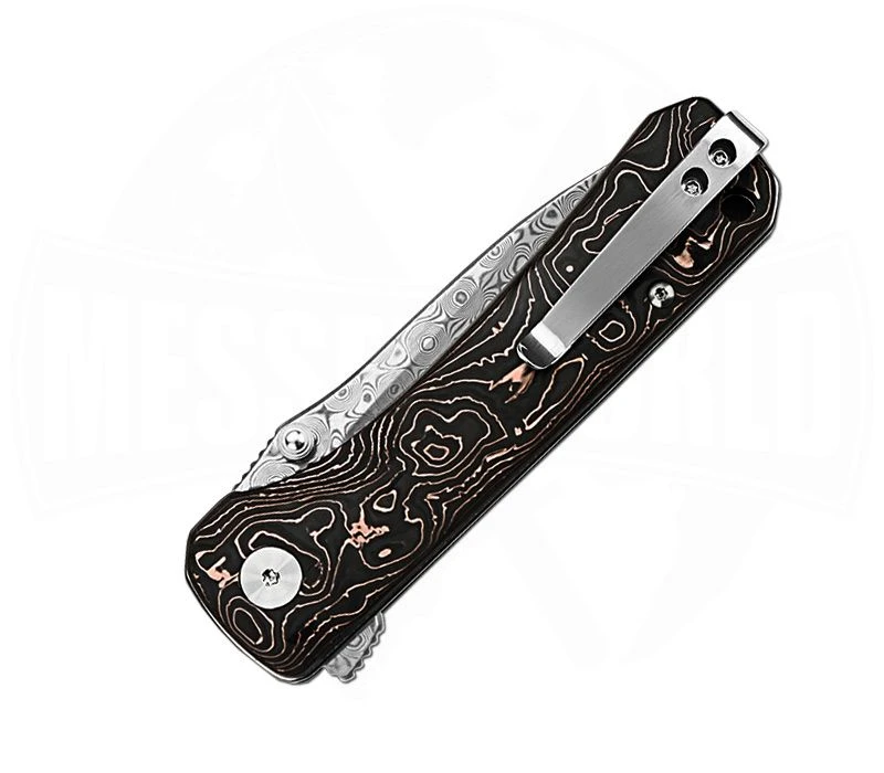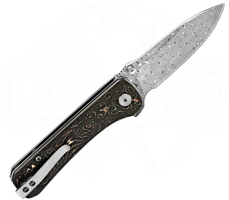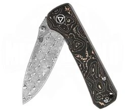 Mit dem Hawk Damascus Copper Foil Carbon hat sich QSP wirklich selbst ĂŒbertroffen! Dieses kunstvolle Einhandmesser kommt mit einer wunderschönen Optik und einem Preis-/Leistungs-VerhĂ€ltnis, welches nicht von dieser Welt ist. Als moderner Gentleman-Folder deckt das Hawk alle Schneidaufgaben des Alltags mit Leichtigkeit ab. DafĂŒr sorgt nĂ€mlich die ca. 8,2 cm lange Damast-Klinge. Diese sieht mit ihrem Muster nicht nur hervorragend aus, sondern lĂ€sst sich auch noch super bequem via Flipper oder Daumenpin bedienen. Da die Klinge kugelgelagert ist, klappt sie in jedem Fall schnell und geschmeidig aus dem Heft. Im Vordergrund steht aber definitv das schicke GriffstĂŒck. Dieses besteht aus einer Kombination von Kohlefaser und feinstem Kupfer, wodurch eine atemberaubende Optik entsteht. Neben der Optik ist natĂŒrlich auch die Funktion entscheiden: Beim Thema Sicherheit ĂŒberlĂ€sst QSP nichts dem Zufall und setzt zur Arretierung einen Liner-Lock ein. NatĂŒrlich soll das Hawk immer am Mann tragbar sein, und so kommt es mit einem praktischen Deep-Carry-Clip.
