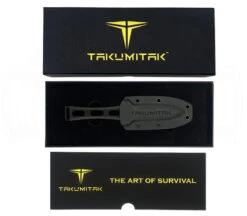 Das tolle Hidden Anger Black von Takumitak fĂ€llt vorallem mit seiner skelettierten Vollerl-Bauweise ins Auge. Das feststehende Messer weist eine GesamtlĂ€nge von 22,2 cm auf und besteht aus robustem und korrosionsbestĂ€ndigem D2. Der Stahl wird mit einer professionellen WĂ€rmebehandlung auf eine HĂ€rte von 62 HRC gebracht. Dadurch wird ein gutes Gleichgewicht zwischen ZĂ€higkeit und HĂ€rte erreicht. Die 8,9 cm lange Spearpoint-Klinge kommt scharf aus der Box und ist mit drei Hohlkehlen ausgestattet. Die Riffelungen an der Griffseite lassen das Messer sicher in der Hand halten und bieten Haftung bei starken EinstĂ€tzen. Das Parrierelement verhindert das Abrutschen auf die Klinge wodurch die Arbeitssicherheit erhöht wird. Die skelettierte Bauweise spart Gewicht ein und bietet genug Platz, um dem Messer ein persönliches Lanyard anzubringen. Eine passgenaue Kydex-Scheide wird mitgeliefert. Sie lĂ€sst sich auf der linken, sowie auf der rechten Seite tragen und eignet sich ideal fĂŒr Links- und RechtshĂ€nder. Sie hĂ€lt das Messer fest und schĂŒtzt es vor Schmutz und Ă€uĂeren Einwirkungen. Der Taschenclip ist MOLLE-kompatibel.Â