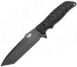 Auch hier finden wir eine kryogengehĂ€rtete 10,7 cm lange Klinge aus 154CM Stahl, die mit einer schwarzen Cerakote Beschichtung versehen wurde, aber diesmal im Tanto Style. Die Griffe aus Gummi sind nicht nur sehr robust, sie sind dank der Fulltang-Bauweise auch demontierbar. Eine Paracordschnur in schwarz, um eine Wicklung am Griff zu fertigen, nachdem man die Griffe abgenommen hat, gehört zum Lieferumfang. Dieses All Black Messer ist perfekt fĂŒr den Einsatz geeignet, findet aber selbstverstĂ€ndlich auch im Survival- wie Outdoorbereich seinen Platz. Ein paar Eckdaten haben wir noch bei dem nĂŒtzlichen HK Fray Fixed Blade Tanto, zum Beispiel ein Jimping auf dem KlingenrĂŒcken, welches das Messer sehr fĂŒhrig macht.Â