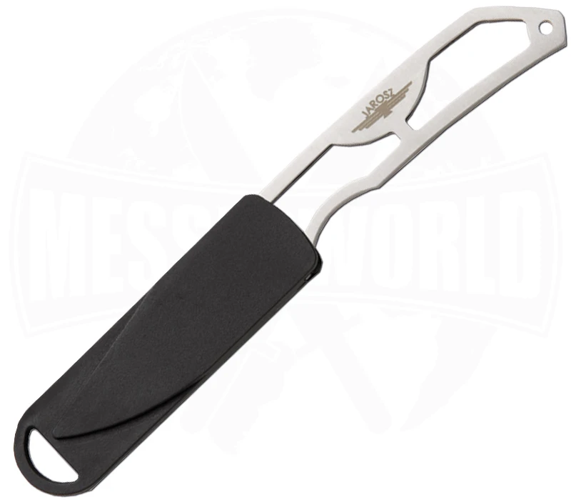 Das Ka-Bar Jarosz Rambler Skeleton Neck Knife schafft die perfekte Balance zwischen Alltagsmesser und Outdoortool. Entworfen von Jessa Jarosz, liegt der Hauptfokus des Messers auf den tĂ€glichen Bedarf. Die 6,3 cm lange Klinge absolviert vor allem leichtere Schneidaufgaben. Da das Messer so stark skelettiert ist, wiegt es gerade einmal 45 g. Mittels der schlichten Steckscheide kann das feststehende Messer ĂŒberall verstaut werden. Als Klingen- und Griffmaterial wurde 5Cr15MoV-Stahl gewĂ€hlt, welcher als leicht nachzuschĂ€rfen gilt und eine solide KorrosionsbestĂ€ndigkeit bietet.Â