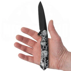 Das Kinzua ist ein modernes Kapitel in der Geschichte der Traditionsfirma Case Knives. Sie zeigen uns ein weiteres Mal, dass sie nicht nur klassische Messer fertigen können. Mit dem Kinzua Skull Custom setzen die Jungs noch einen drauf und verzieren die schwarzen Aluminiumgriffschalen mit weiĂen Totenköpfen.