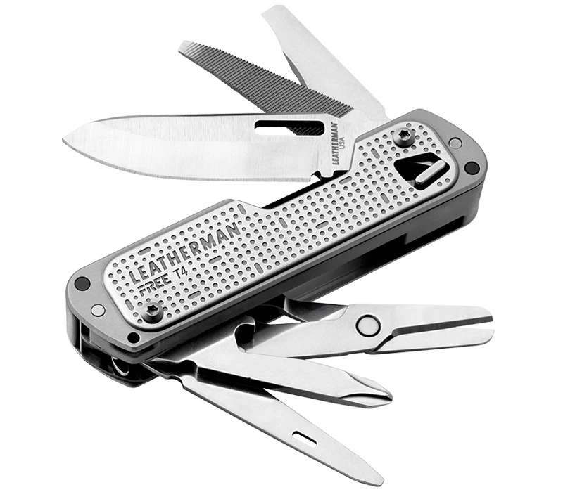 Das FREE T4 ist ein stabiles und kompaktes Taschenmesser von Leatherman nach Schweizer Vorbild. Es besitzt nicht nur eine hochwertige, 5,6 cm lange Klinge aus 420HC-Stahl, sondern 12 weitere funktionelle Werkzeuge im Taschenformat. Der leichte Griff aus Edelstahl und GFK beherbergt alle Tools in geschlossenem Zustand. Dank der hervorragenden Konstruktion und der einhändigen Bedienbarkeit kann jedes Werkzeug einfach in Arbeitsposition gebracht werden und wird dann automatisch arretiert. Damit wird ein sicheres Arbeiten mit dem Taschenmesser garantiert. Mit seinem Gewicht von 122 g kann es bequem mit dem demontierbaren Clip getragen werden.