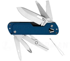 Das Navy-blaue FREE T4 Multi-Tool von Leatherman ist ein modernes, kompaktes und sehr interesantes Taschenwerkzeug, das nach den heute gewünschten Anforderungen entwickelt worden ist. Ausgestattet mit einer scharfen, 5,6 cm langen Klinge aus 420HC-Stahl und noch weiteren 12 funktionellen Werkzeugen im Taschenformat ist es ein idealer Begleiter für die Stadt und im Outdoorbereich. Der leichte Griff aus Edelstahl in Navy-Blau liegt sicher in der Hand und beherbergt alle Werkzeuge im geschlossenen Zustand, die dank der genialen Ingenieurskunst einhändig bedienbar sind und jedes Tool im geöffneten Zustand automatisch arretiert. Damit wird ein sicheres Arbeiten mit dem Multi-Taschenmesser garantiert. Mit einem Gewicht von 122 g kann es bequem mit dem demontierbaren und austauschbaren Clip getragen werden.
