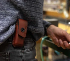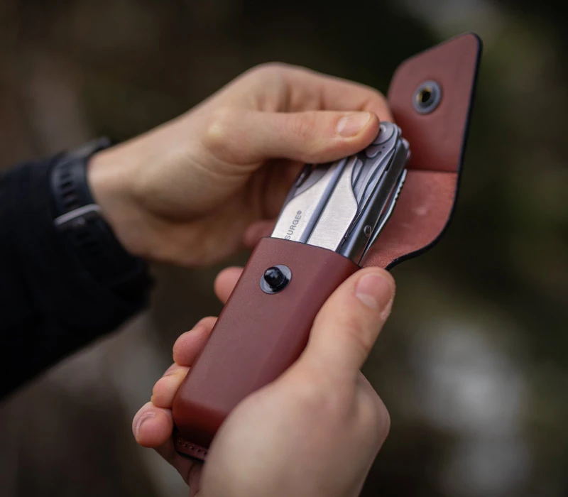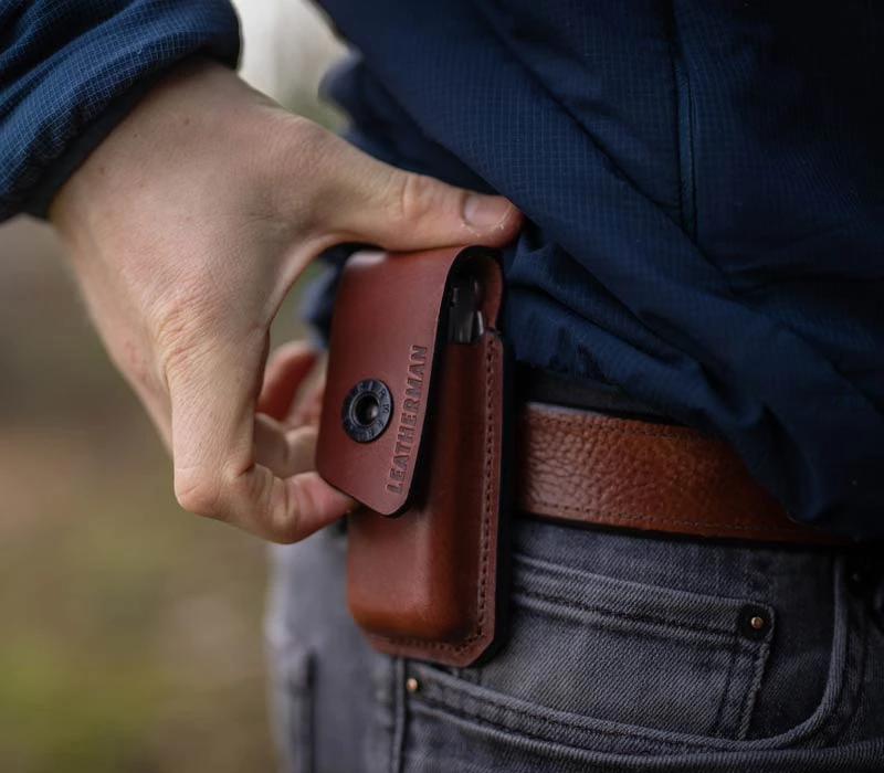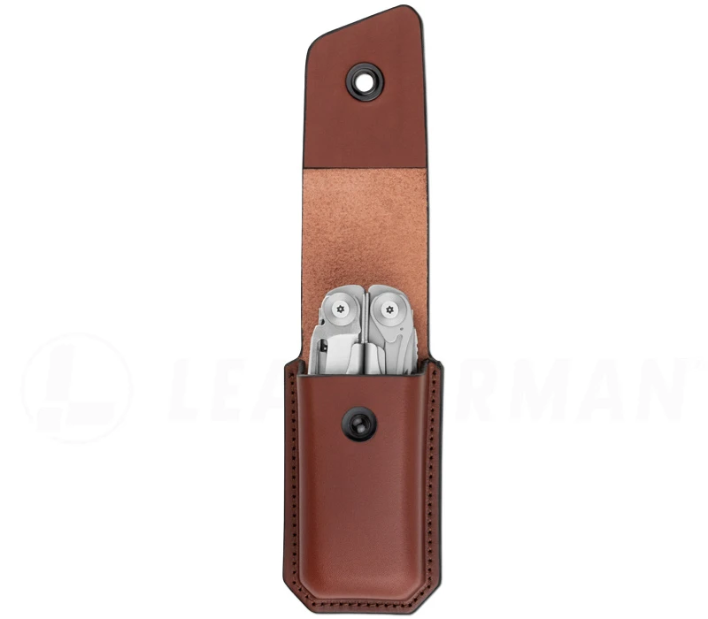 Kein Bock auf Kunststoff? Dann dĂŒrfte die Sheath Leder Mahagoni Large genau das Richtige fĂŒr dich sein! Aus schönem, pflanzlich gegerbtem Leder gefertigt, unterstreicht es eindrucksvoll den Charakter deines Lieblingstools. Mithilfe des Schnappverschlusses sorgt es dafĂŒr, dass dein Leatherman sicher verwahrt bleibt und nicht einfach verloren geht. Die AbmaĂe der Scheide sind 12 x 3,8 x 2 cm, wodurch sie perfekt fĂŒr gröĂere Modelle wie dem Supertool 300, dem Surge und dem OHT.Â