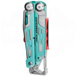 Das Signal Aqua Multitool von Leatherman mit seiner modernen, frischen Farbgestaltung ist ein echtes, hochwertiges Outdoor-Multifunktionswerkzeug, das jeden Abenteuerfreund durch seine abgestimmten Werkzeuge begeistert. So besitzt das Signal eine hervorragende Zange mit auswechselbarem Hartdrahtschneider, einen Feuerstarter und sogar eine Signalpfeife. Insgesamt 19 Funktionen stehen zur VerfĂŒgung. Die Aqua-blauen Griffschalen bilden zusammen mit den Edelstahl Tools einen schönen Kontrast. Mit dem Karabiner kann es an jeder AusrĂŒstung befestigt werden. Mit dem Signal Aqua bist du auf das Unerwartete vorbereitet, es ist ein exzellentes Werkzeug, das dir auf deinem Weg zur Seite steht. Ein langlebiges Holster mit GĂŒrtelschlaufe aus ballistischem Nylon ist im Lieferumfang enthalten.