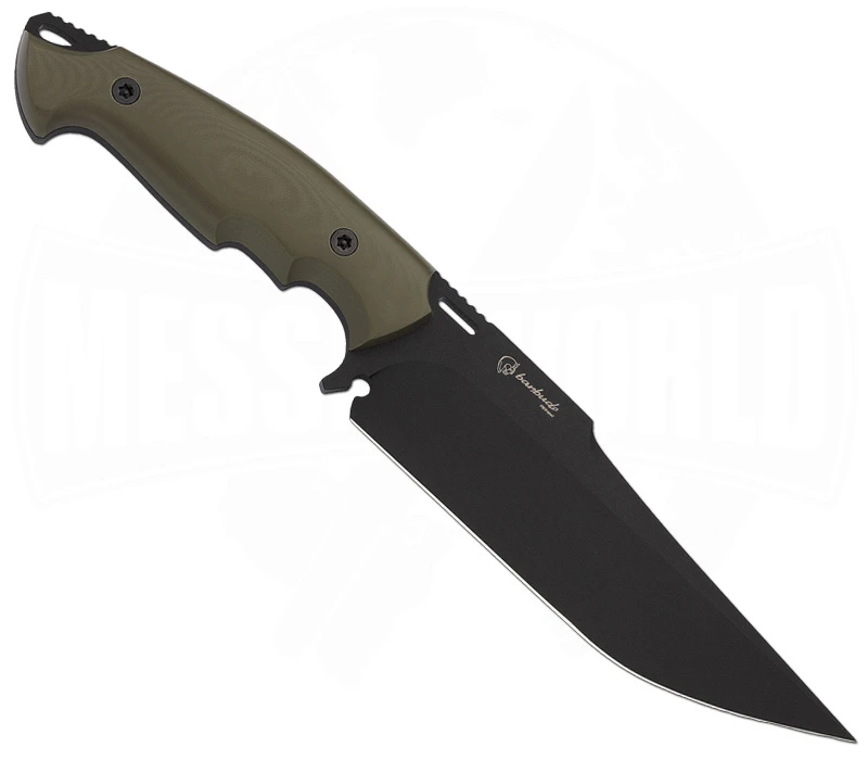 Die 18 cm lange PVD-beschichtete Clip Point Klinge aus kryogengehÀrtetem Sleipner Stahl ist sehr robust und mit einem hervorragenden Hohlschliff ausgestattet. Das macht dieses Messer zu einem bissigen Schneidteufel. Die Full Tang Bauweise garantiert dabei maximale StabilitÀt und ZuverlÀssigkeit in jeder Situation.