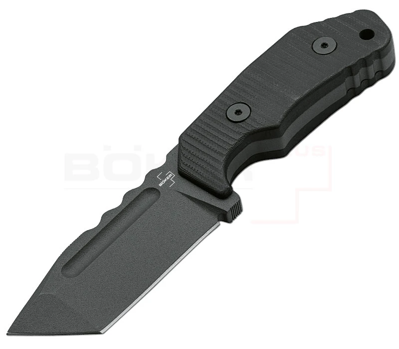 Wenn man im Duden das Wort „robust“ nachschlägt, dann wird man auf der beispielhaften Abbildung wohl künftig das Little Dvalin Tanto finden können. Und das auch zurecht, denn das Dvalin ist ein Messer wie es nur dem Kopf der deutschen Midgards Schmiede entspringen könnte! Ausgerüstet mit einer 8 cm langen und 6 mm starken Tanto-Klinge aus zähem D2 Werkzeugstahl macht das handliche Outdoormesser kurzen Prozess mit so einigen Hindernissen. Der Vollerl-Klingenkorpus sorgt für eine außergewöhnliche Stabilität, währenddessen der ergonomische G10-Griff sowie die Daumenauflage auf dem Klingenrücken ein sicheres und angenehmes Arbeiten gewährleisten. Zum Schutz vor Korrosion sowie Kratzern und nicht zuletzt aus optischen Gründen ist die Klinge mit einer Titanbeschichtung versehen. Eine hochwertige Kydexscheide inklusive Gürtelclip sowie eine Fangriemenöse bieten stilvolle Transportmöglichkeiten.