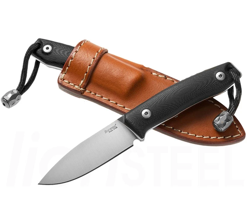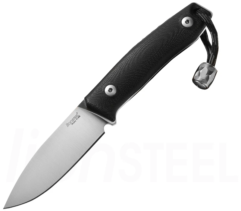 Das M1 Black ist ein small-size Gürtelmesser von Lionsteel aus Italien. Es ist ein kompaktes Allroundmesser, das auf der Jagd oder als leichtes Outdoormesser eingesetzt werden kann. Die 7,4 cm Klinge des M1 Messers ist aus pulvermetallurgischem rostfreiem M390 Stahl hergestellt. Hervorragend verarbeitet, bieten die schwarzen G10 Griffschalen eine perfekte Harmonie mit der Klinge. Weitere Ausstattungsmerkmale befinden sich am Griffende, dort ist eine Lanyardschnur mit einen gefrästen Titanperle befestigt. Zum Transport des Messers dient eine im Lieferumfang enthaltene, hochwertig verarbeitete braune Köcherscheide aus Leder mit breiter Gürtelschlaufe.