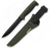 Der ergonomische Griff des finnischen Outdoormessers besteht aus TPE und bietet einen sicheren Halt, selbst mit nassen Händen. Dieses Material ist äußerst langlebig und unempfindlich gegenüber Feuchtigkeit, Chemikalien und Temperaturschwankungen. Genau richtig für den Einsatz in der Natur.