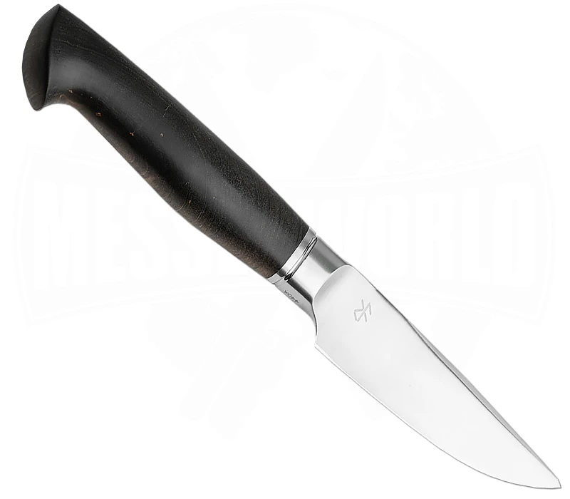 Der edle Griff aus stabilisiertem Riegelahorn liegt perfekt in der Hand und bietet dir einen sicheren Halt in jeder Situation. Sein markanter Knauf verleiht dem Messer eine zusÀtzliche Eleganz und Charakter sowie eine hervorragende Handlage.