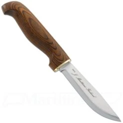 Marttinii aus Finnland stattet dieses schöne Jagd- und Outdoormesser mit einer 11 cm langen, scharfen und schnitthaltigen Klinge aus rostfreiem Edelstahl aus. Der ergonomisch geformte Griff besitzt eine elegante Optik dank des verwendeten braunen Pakkaholzes. Bei Arbeiten liegt das Messer sicher durch die Fingermulden in der Hand. Zum Lieferumfang gehört eine braune Lederscheide mit Gürtelschlaufe.