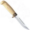 Das Lynx ist ein klassisch finnisches Messer und versprĂŒht durch seine natĂŒrlich belassenen Materialien einen rustikalen Charme. Die Klinge hat eine LĂ€nge von 11 cm und ist mit einer Straight-Back-Form fĂŒr viele verschiedene Anwendungsbereiche geeignet. Sie besteht aus nicht rostfreiem Carbonstahl, wodurch sie ohne viel Aufwand beim Schleifen sehr scharf wird und diese SchĂ€rfe auch lange hĂ€lt. Allerdings benötigt er dadurch etwas mehr Pflege und nach dem Gebrauch etwas Ăl, um Korrosion zu verhindern. Beim oberen Teil der Klinge wurde die OberflĂ€che unbehandelt gelassen, um einen schönen farblichen Akzent zu setzen. Der Griff aus Maserbirke besitzt eine ausgeprĂ€gte Maserung, die das edle Auftreten des Messers unterstreicht. Um die WitterungsbestĂ€ndigkeit zu erhöhen, hat man den Griff mit einer Schicht Klarlack versiegelt, damit kein Wasser oder Schmutz mehr von den Holzfasern aufgenommen werden kann. Teil des Lieferumfangs ist eine sauber verarbeitete Lederscheide, die das Lynx sicher transportiert.
