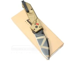 MF1 Desert Warfare von Extrema Ratio besitzt eine Kling aus Böhler N690 mit MIL-C-13924 Beschichtung. Das Einhandmesser lĂ€sst sich schnell und einfach öffnen und verriegelt mit dem bewĂ€hrtem Liner-Lock. ZusĂ€tzlich kann der Liner ĂŒber die manuelle Klingensicherung verriegelt werden. Ein versehentliches SchlieĂen ist somit fast ausgeschlossen. Die Klinge des MF1 Desert Warfare hat eine StĂ€rke von 3,5 mm und besitzt ein Camo-Finish. Eine Daumenauflage perfektioniert das Handling des Messers. Der wĂŒstenfarbene Aluminiumgriff hat die typischen Senkungen. Ein umsetzbarer, stabiler Metallclip dient zur sicheren Befestigung an der AusrĂŒstung. Â