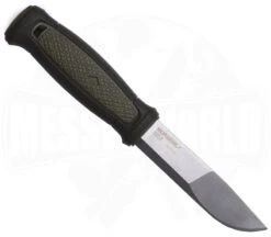 Mit dem Kansbol Green hat sich Morakniv mal wieder selbst übertroffen! Das feststehende Outdoormesser, welches bei Mora in Schweden gefertigt wird, kommt mit allem was ein leidenschaftlicher Camper oder Bushcrafter in einem Messer braucht. Das Design des Kansbol Green ist komplett auf den praktischen Nutzen ausgelegt. Mit seiner 10,5 cm langen Klinge lassen sich etliche Materialien mühelos schneiden, während sie dank der aufgeteilten Klingenstärke auch für präzisere Arbeiten taugt. Der ausgewählte 12C27 Klingenstahl ist auch nicht von schlechten Eltern, nicht umsonst ist dieser in der Community so beliebt. Er ist recht schnitthaltig, hält einiges aus und lässt sich gut nachschärfen. Ein echter Alleskönner für kleines Geld, passen zum Kansbol selbst. Durch seinen rutschfesten Kunststoffgriff liegt das Outdoormesser jederzeit angenehm in der Hand. Wie gewohnt, ist der Klingenrücken kantig gehalten, um mittels Feuerstarter schnell ein warmes Campfire errichten zu können. Eine Kunststoffscheide mit Gürtelschlaufe ist natürlich auch mit dabei!