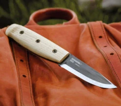 Die Klinge des Messers besteht aus recyceltem schwedischem Edelstahl gefertigt und bietet mit einer Klingenlänge von 10,3 cm und einer Dicke von 2,5 mm eine optimale Balance zwischen Präzision und Robustheit. Durch die Droppoint-Form lassen sich auch jagdliche Schneidaufgaben komfortabel erledigen. Sie eignet sich aber auch ideal fĂĽr alle Aufgaben im Freien, sei es Schnitzen, zum Bau von SchutzhĂĽtten oder beim Zubereiten von Mahlzeiten. Mit dem KlingenrĂĽcken des praktischen Messers lässt sich problemlos ein Feuerstahl anreissen!Â