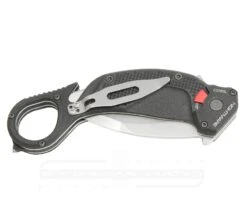 Das Karambitmesser Nightmare ist ein funktionelles und robustes Rettungsmesser. Es ĂŒberzeugt durch eine Tantoklinge mit zwei Schneidebenen, eine TeilsĂ€gezahnung sowie Gurtschneider und Glasbrecher. Zur Sicherheit des Anwenders wurde ein tiefliegender Liner verbaut, so dass sich die Klinge auf keinen Fall beim Arbeiten schlieĂen kann. Der Handschutz und der Fingering am Ende des Griffes sind weitere sinnvolle ErgĂ€nzungen fĂŒr ein Einsatzmesser. Das Messer ist fĂŒr Links- und RechtshĂ€nder geeignet.