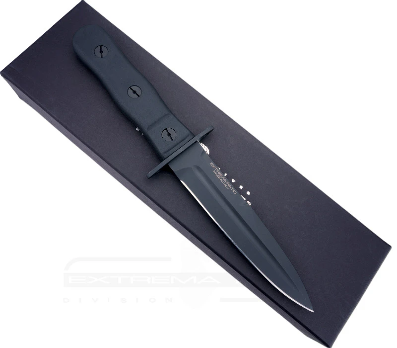 Zum Gedenken an die Schlacht von Case Grizzano vom 19. April 1945, als die italienische FallschirmjĂ€gertruppe des 183. Regiments gegen die 1. Division der Deutschen „Green Devils“ kĂ€mpfte, wurde das Nimbus Operativo von Extrema Ratio, als Nachfolger des Modells 39-03, entworfen. Namensgebend fĂŒr das Nimbus waren die Gewinner der Schlacht, die italienischen „Nembo“. Konzipiert ist das Nimbus als modernes Einsatzmesser, mit einer KlingenlĂ€nge von 14,1 cm und einer KlingenstĂ€rke von 5mm, gefertigt aus Böhler N690 Stahl. Das 26,3 cm groĂe Messer lĂ€sst sich in einer praktischen Kydexscheide verstauen, welche perfekt an die Abmessungen des Nimbus angepasst ist. Besonders gut liegt der aus Forprene hergestellte Griff in der Hand, welcher zusĂ€tzlich ĂŒber eine Parierstange verfĂŒgt. Freunde des Allblack-Designs, werden mit diesem Modell definitiv glĂŒcklich, da es mit einer MIL-C-13924 Beschichtung versehen ist. Dank des geringen Gewichtes von gerade einmal 203 g lĂ€sst es sich ohne Probleme mithilfe der Scheide transportieren.