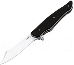 Selten hat man so ein auĂergewöhnliches Messer gesehen! Besonders ins Auge fĂ€llt einem sofort die sonderbar geformte 9Cr13CoMoV Stahl-Klinge, die nicht wenig an einen orientalischen SĂ€bel erinnert. Die Mischung aus Wharncliffe-Klinge und Drop-Point-Klinge gibt dem Messer aber definitiv einen coolen Look und rundet das Design ab. Durch den Flipper lĂ€sst sich die Klinge sehr leicht einhĂ€ndig öffnen und arretiert durch den Liner-Lock akkurat. Besonders gut in der Hand liegt das Messer nicht nur durch sein geringes Gewicht von gerade einmal 60 g, sondern auch durch die texturierten und rutschsicheren Griffschalen, welche aus G10 gefertigt wurden. Ein Tip-Up Clip ist ebenfalls am Messer befestigt.Â