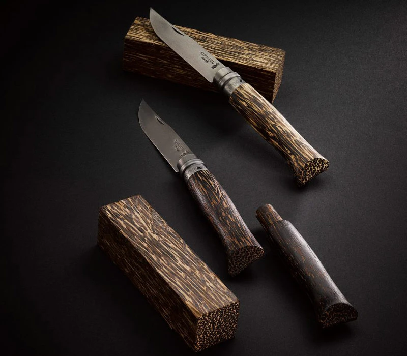 Mit dem No. 08 Palm Wood Black limitiert zeigt sich Opinel von seiner edleren Seite. Das limitierte Taschenmesser ist im klassischen No.08 Style gehalten, kommt jedoch mit einem hochwertigen Griffstück aus Patawa Palmenholz. Die 8,3 cm lange Klinge aus schwedischen Sandvik 12C27M Stahl, ist mit einer matten Anthrazitbeschichtung überzogen, welche das Messer noch wertiger aussehen lässt. Die feine Musterung auf dem Griffstück des Holzes macht einen wirklich tollen Eindruck. Eine gute Wahl für Sammler und Messerfans!