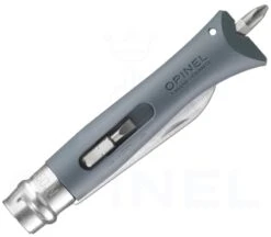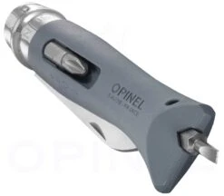 Das Opinel No.09 Bricolage ist ein multifunktionales, hilfreiches Taschenmesser fĂŒr den tĂ€glichen Gebrauch. Es hat eine robuste, 8 cm lange Klinge aus modifiziertem rostfreiem Sandvik 12C27 Stahl, die an der Basis durch einen Abisolierer und Fadenschneider ergĂ€nzt wurde. Wie auch bei den traditionellen Messern von Opinel wird die Klinge auch durch die Virobloc-Sicherung arretiert. Rechts und links vom glasfaserverstĂ€rkten Polyamidgriff sitzt je ein Bit fĂŒr Schlitzkopf- und Kreuzschlitzkopfschrauben. Die handelsĂŒblichen Bits werden am Griffende in den magnetischen Halter eingesteckt, damit kann das Messer als Schraubendreher verwendet werden. Die Lösung ist einfach und genial zugleich. Eine dĂŒnne Fangschnur kann am Griffende befestigt werden. Das Opinel-Messer gibt es in zwei Farben.